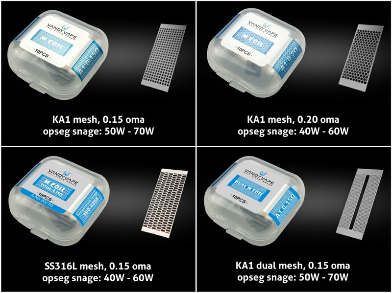 Vandy Vape M Coil mesh zamijenski grijači od mesh trake. Predviđeni za Vandy Vape Kylin M i Mesh RDA, ali se mogu koristiti i na drugim mesh atomizerima (direktno ili uz manje modifikacije).